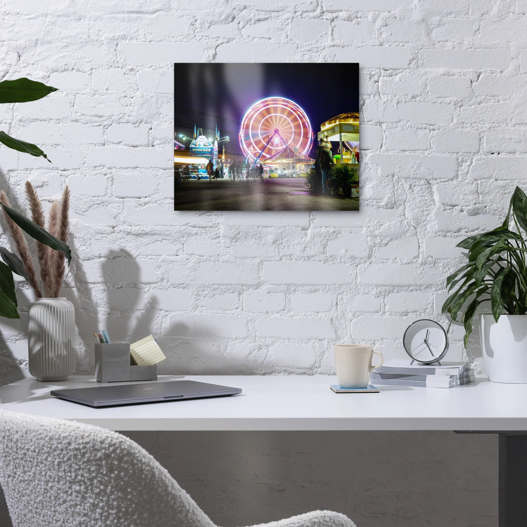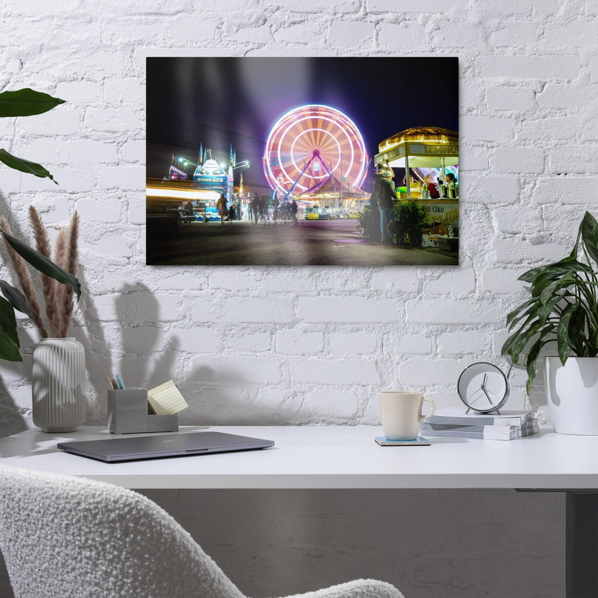 Oh, those summer nights in New England. Hear the commotion of children, the clanking of rickety old rides; food vendors and carnival workers calling for your attention. Smell the still-soaked dirt, funnel cake, and Italian sausage. Make it a permanent memory for your home, office, or study with a metal print.